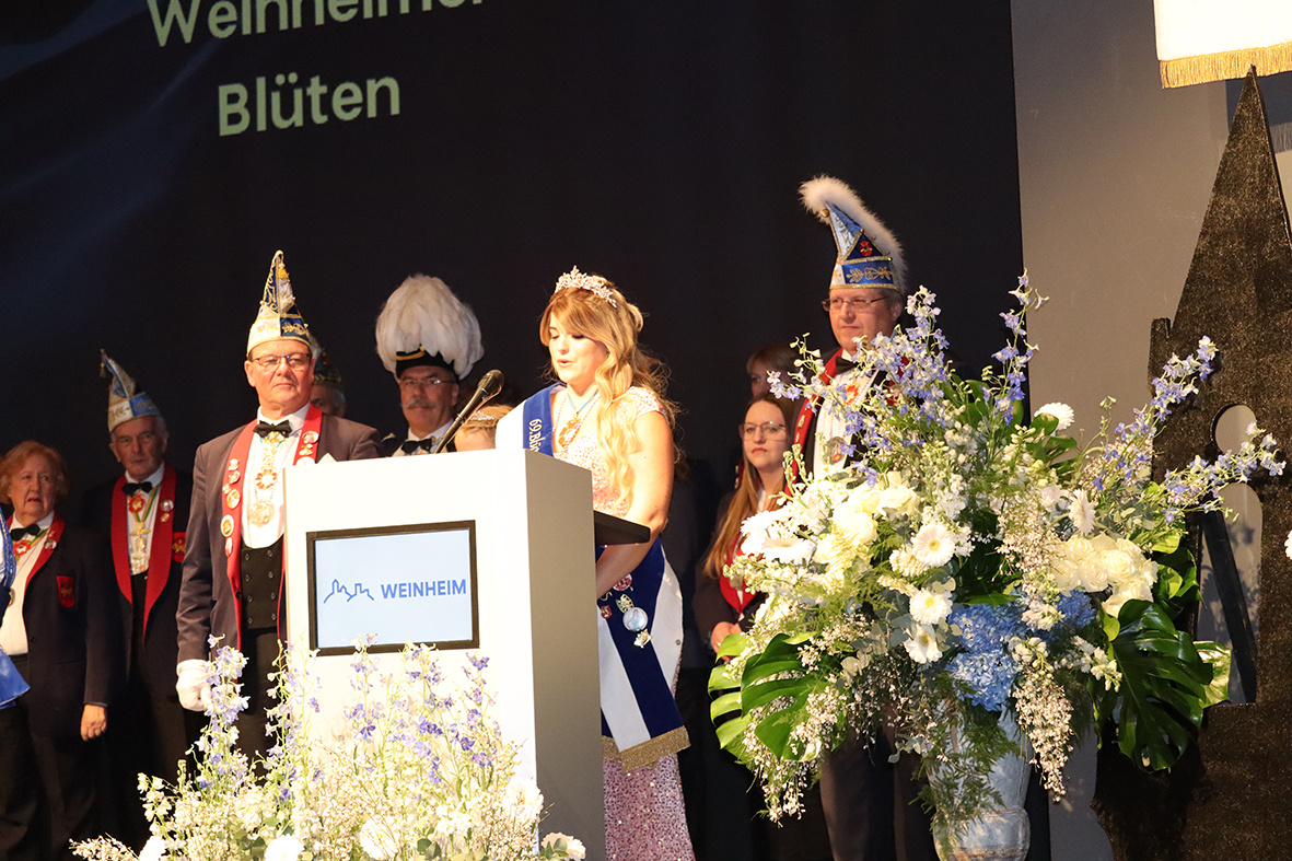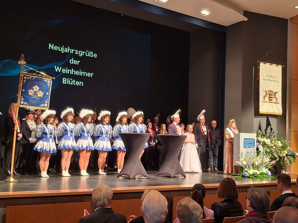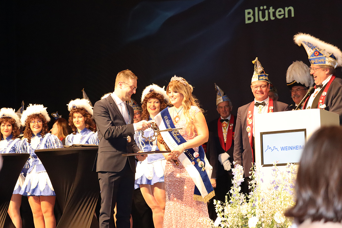 Der Neujahrsempfang begann mit einer feierlichen Eröffnung durch die beiden Prinzessinnen und den aktiven Mitgliedern der Weinheimer Blüten. Prinzessin Danielle überbrachte die Neujahrsgrüße der Blüten und Übernahm den symbolischen Rathausschlüssel durch den Oberbürgermeister der Stadt, Manuel Just. Ihre Anwesenheit stand nicht nur für die Fortsetzung der Weinheimer Blüten-Tradition, sondern auch für den Beginn eines ereignisreichen Jahres für die Stadt.