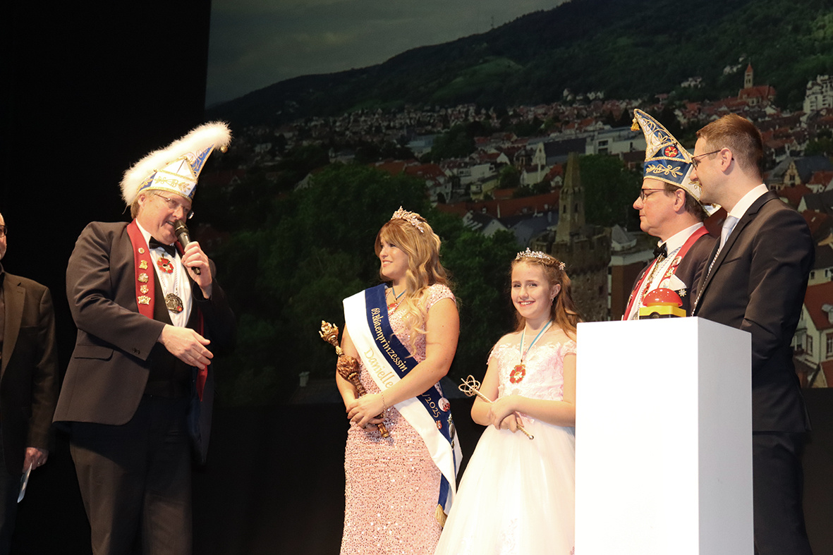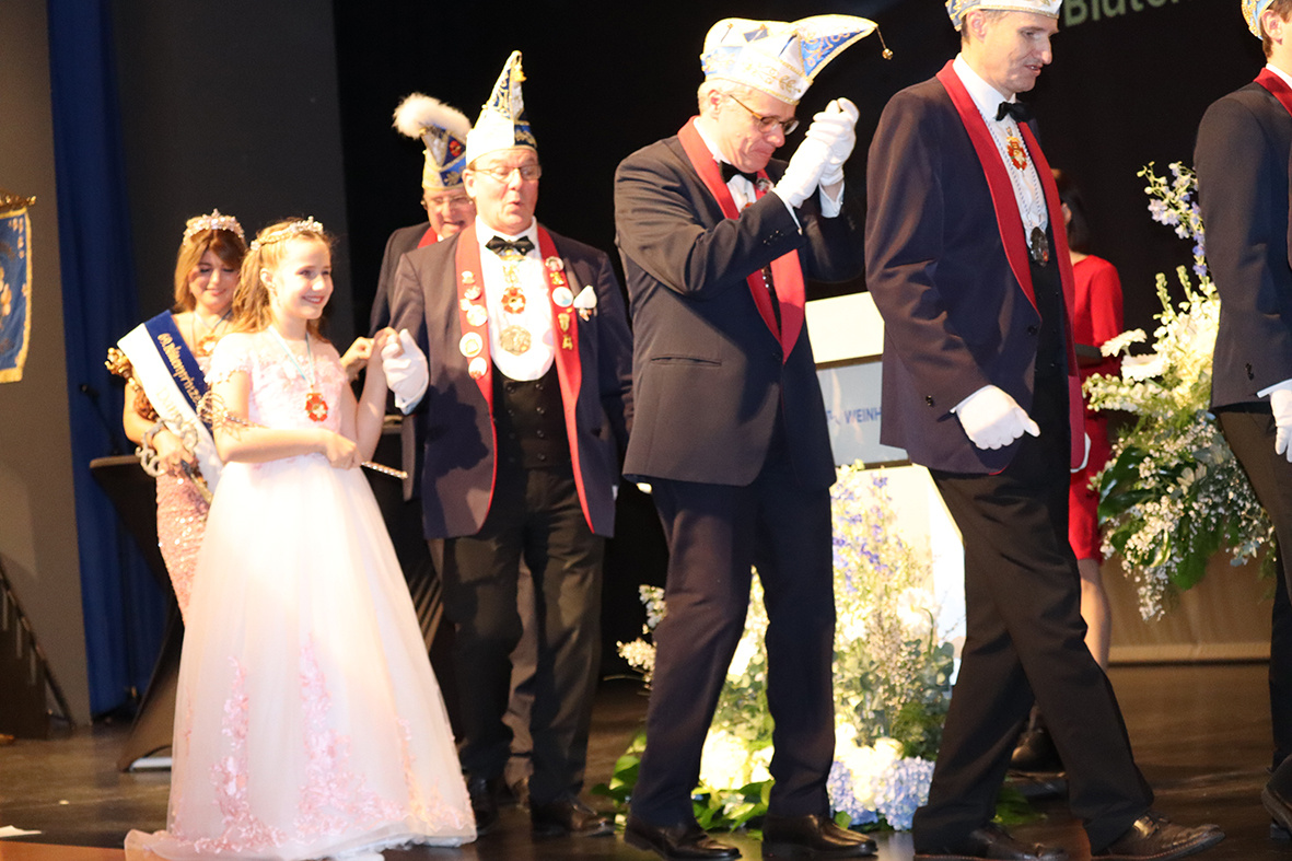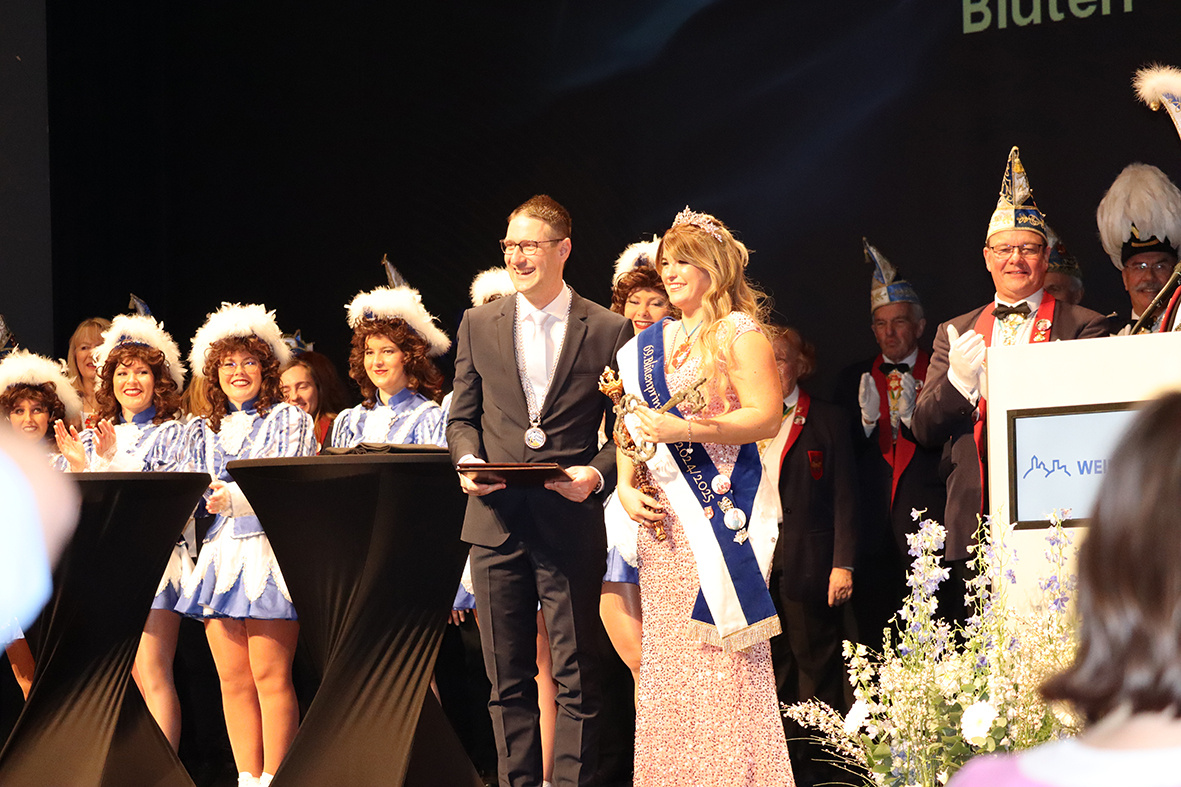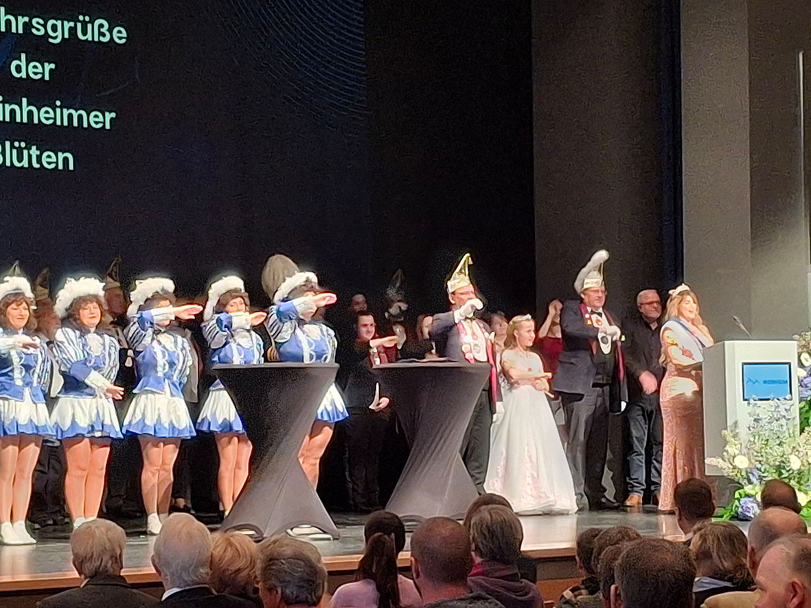 Der Neujahrsempfang begann mit einer feierlichen Eröffnung durch die beiden Prinzessinnen und den aktiven Mitgliedern der Weinheimer Blüten. Prinzessin Danielle überbrachte die Neujahrsgrüße der Blüten und Übernahm den symbolischen Rathausschlüssel durch den Oberbürgermeister der Stadt, Manuel Just. Ihre Anwesenheit stand nicht nur für die Fortsetzung der Weinheimer Blüten-Tradition, sondern auch für den Beginn eines ereignisreichen Jahres für die Stadt.