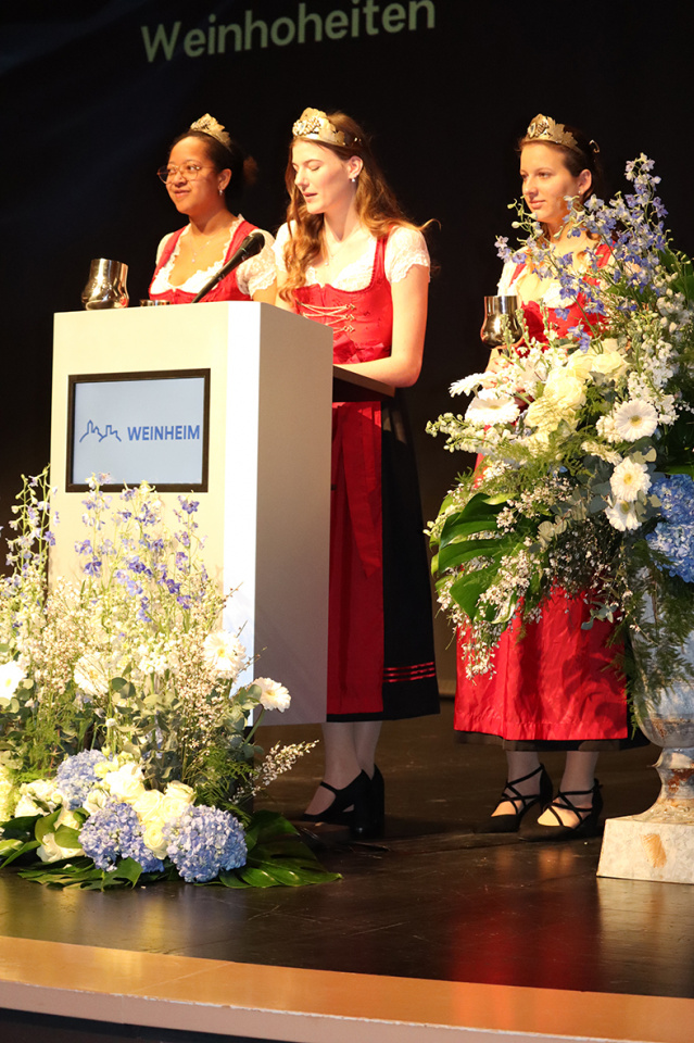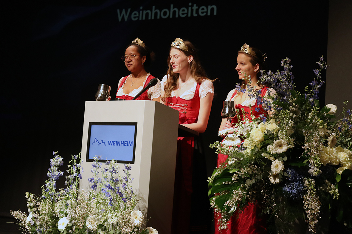 Auch die Lützelsachsener Winzerhoheiten begrüßten die Gäste und überbrachten ein herzliches Grußwort. Sie erinnerten an die Bedeutung des Weinbaus für die Region und hoben hervor, wie wichtig der Zusammenhalt innerhalb der Weinheimer Gemeinschaft für die Förderung von Traditionen und kulturellen Werten sei. Der Weinbau, so betonten sie, sei ein wahrer Schatz der Region und ein Symbol für die Verwurzelung der Stadt in ihrer Geschichte.