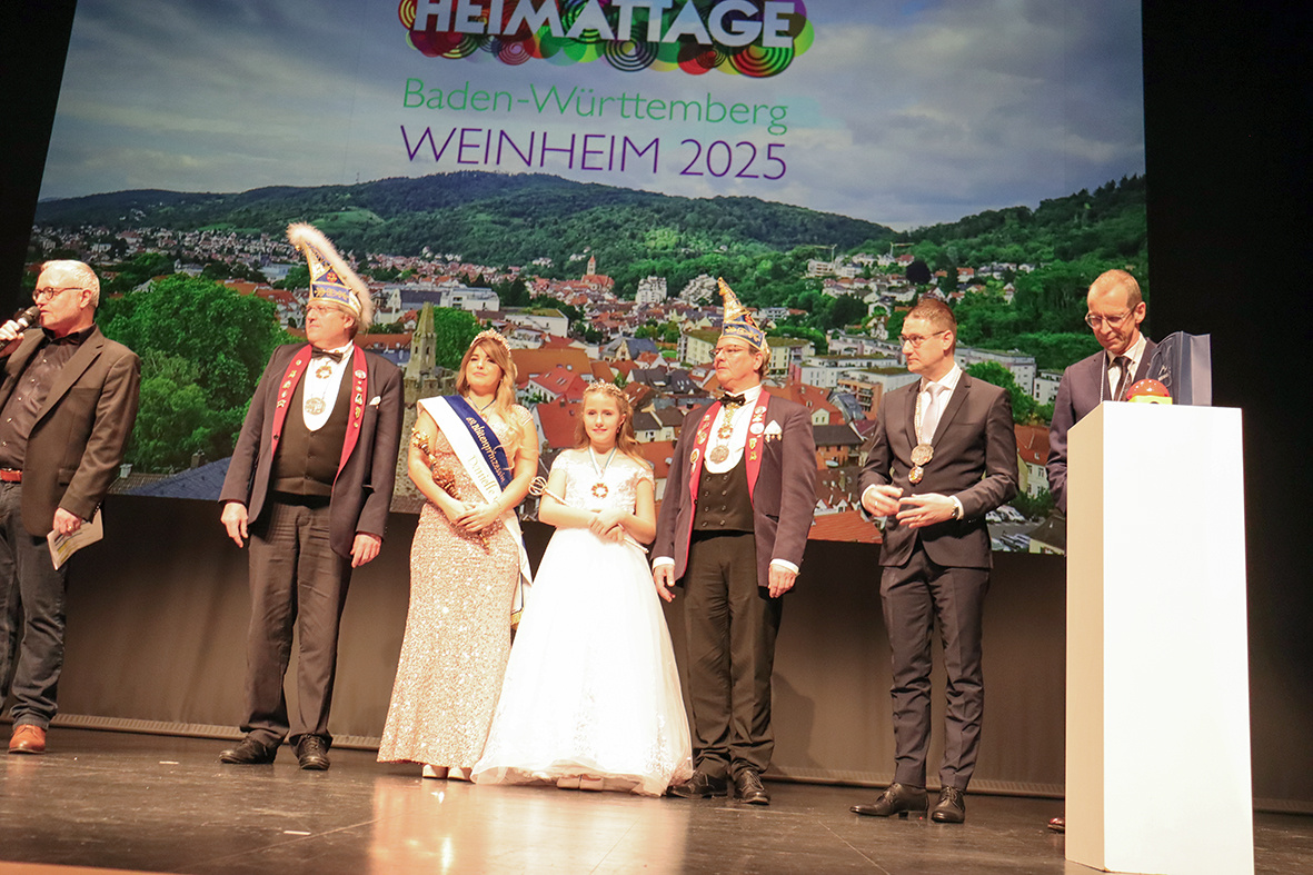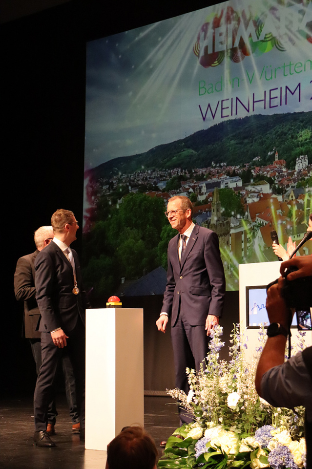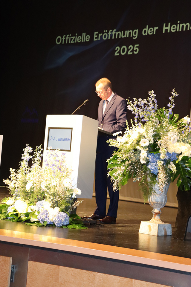 Der Höhepunkt des Vormittags war die feierliche Eröffnung der Heimattage 2025, deren Ausrichter die Stadt Weinheim in diesem Jahr ist. Die Heimattage sind ein Fest der regionalen Kultur und Traditionen und bieten zahlreiche Veranstaltungen, die die Geschichte und Vielfalt der Region erlebbar machen. Der Oberbürgermeister begrüßte diese besondere Auszeichnung und betonte, wie stolz die Stadt darauf sei, Gastgeber dieses traditionsreichen Ereignisses zu sein. Die Besucher können sich auf ein buntes Programm freuen, das sowohl kulturelle Höhepunkte als auch spannende Einblicke in die Geschichte und das Leben in der Region bietet. Die vom Pop- und Jazzchor zum ersten Mal vorgetragene Weinheim-Hymne wird in diesem Jahr sicherlich noch oft zu hören sein. Heimat ist ein Gefühl.
