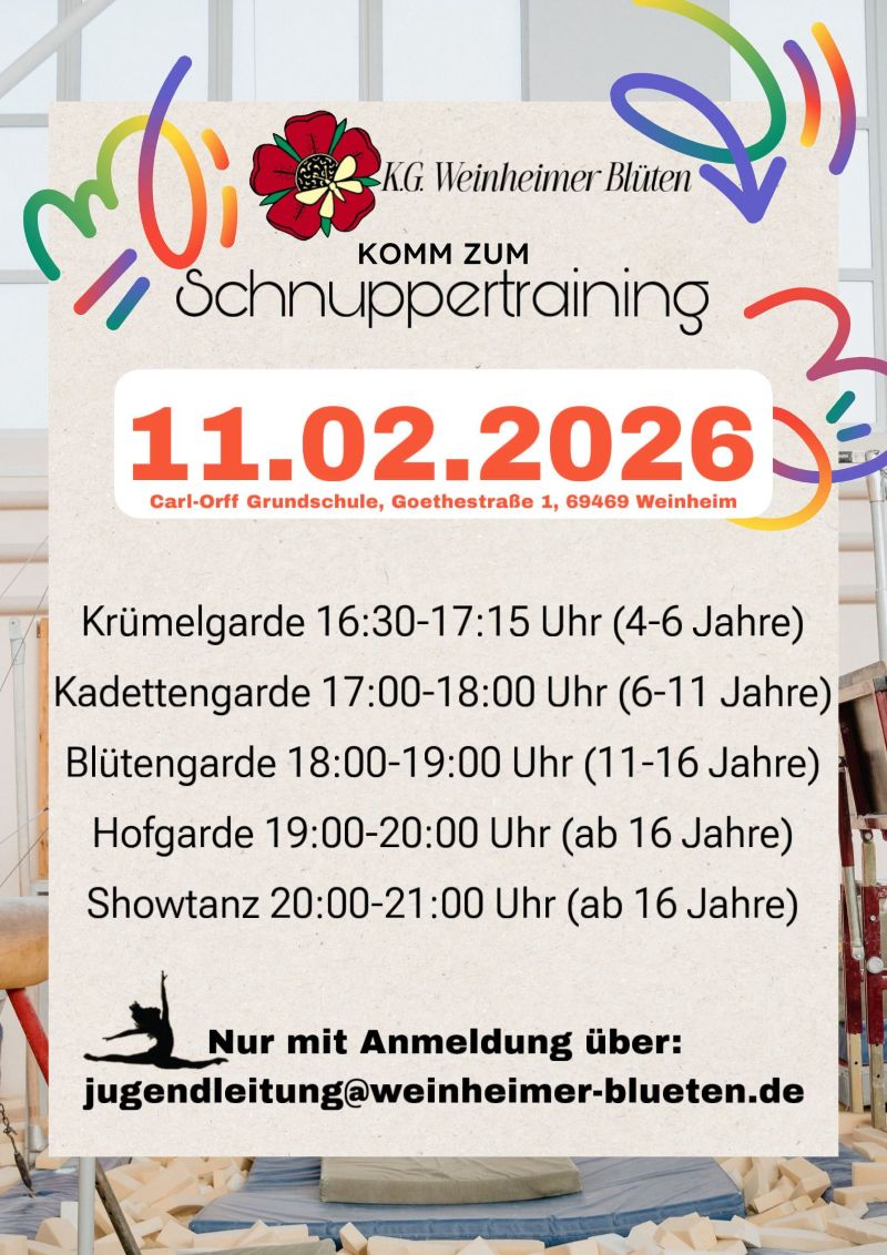 Hast Du Lust mitzutanzen? Dann komme doch zu unserem diesjährigen Schnuppertraining am 11.02.2026.