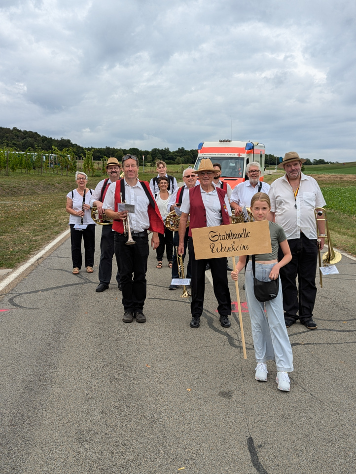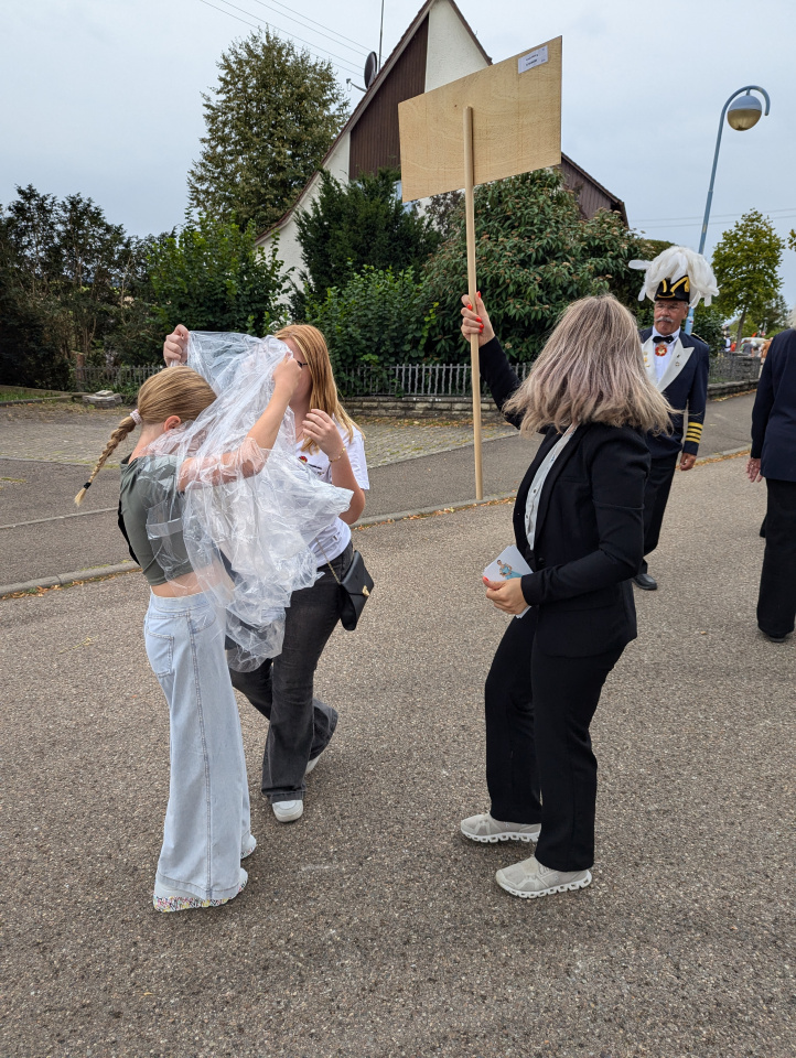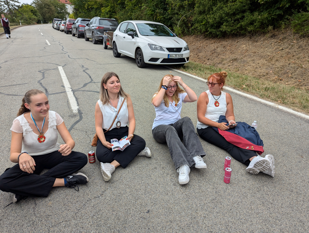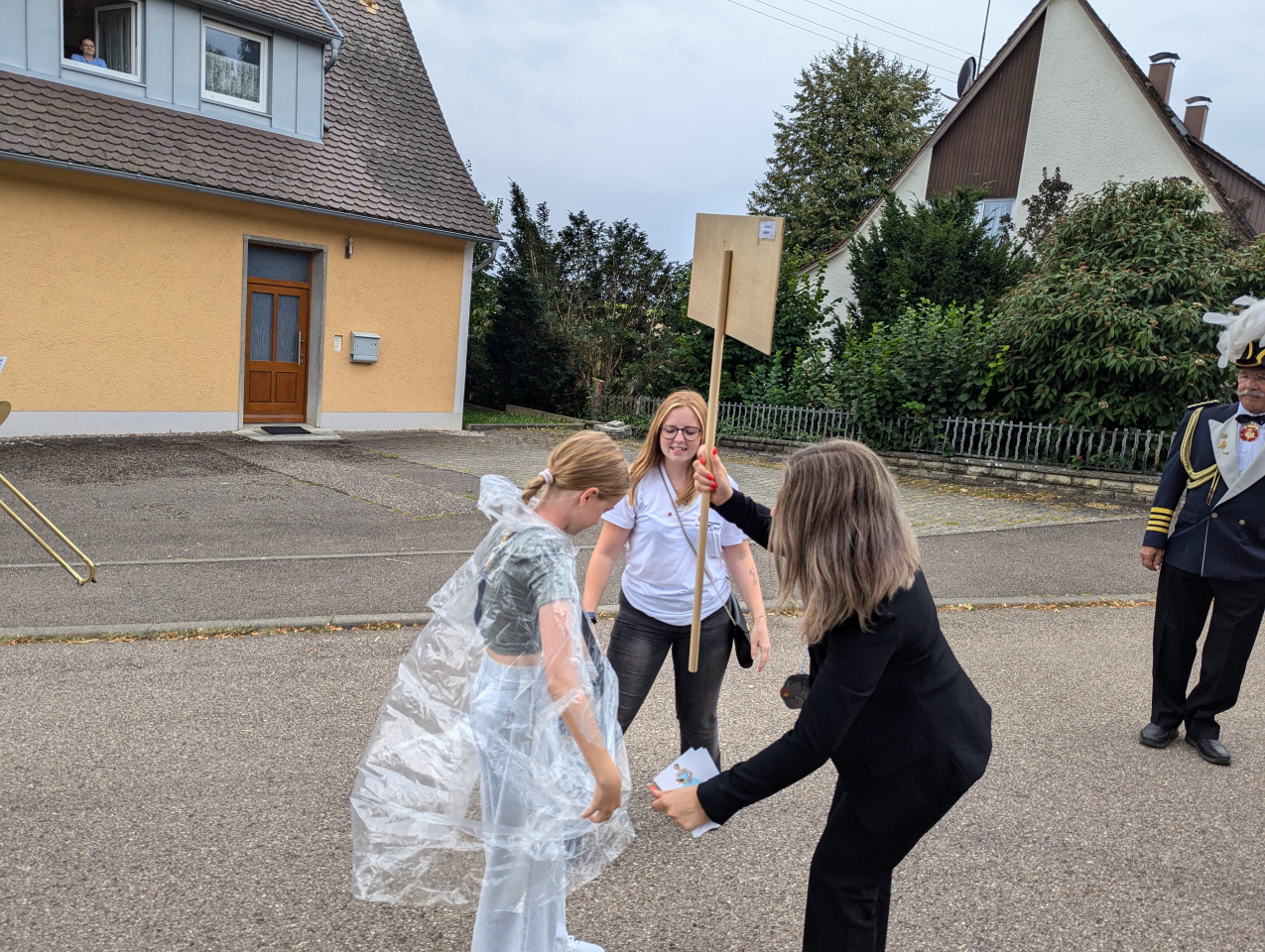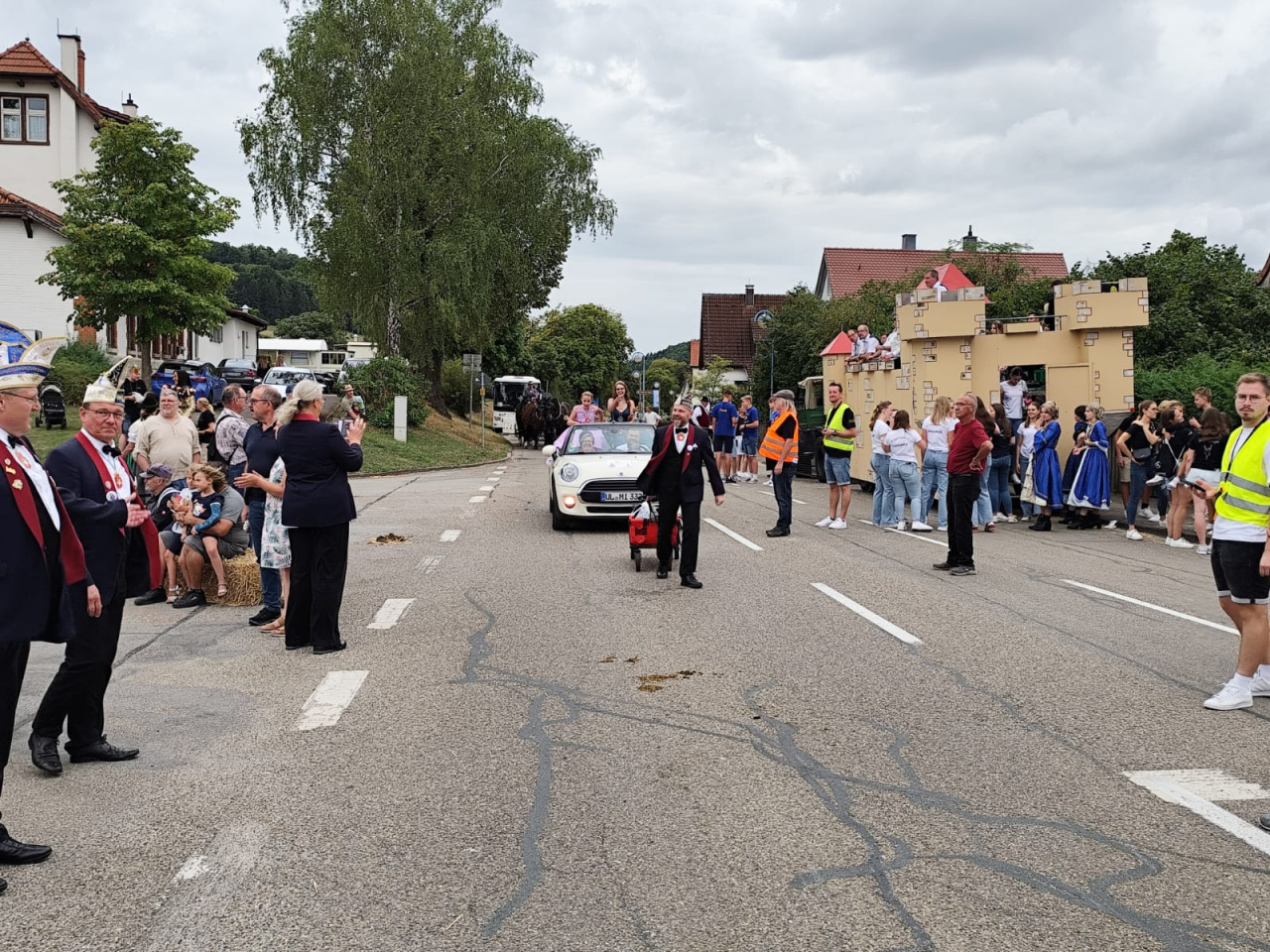 Vor der Ehrentribüne legten wir einen kurzen Halt ein und sangen gemeinsam mit Unterstützung der Stadtkapelle das „Badner Lied“. Trotz eines kurzen Regenschauers am Ende des Umzugs blieb die Stimmung ungetrübt.