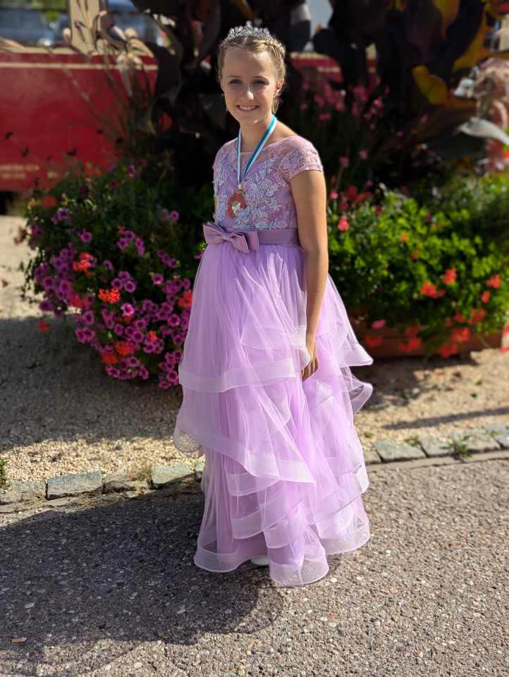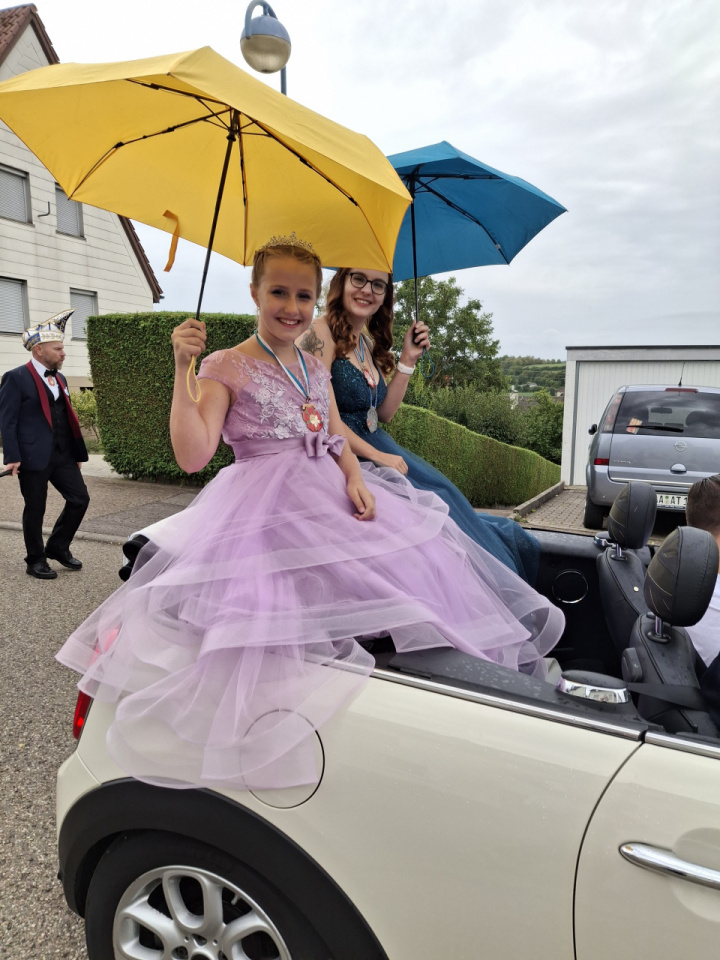 (ak) Am vergangenen Sonntag machten sich die „Weinheimer Blüten“ mit 20 Aktiven, unserer Prinzessin Sabrina II. und unserer Kinderprinzessin Victoria I. auf den Weg nach Neresheim, um beim Landesfestumzug die Fahne für die Heimattage 2025 in Weinheim zu übernehmen. Mit viel Freude und Elan repräsentierten wir unsere Stadt und trugen zur festlichen Stimmung bei.