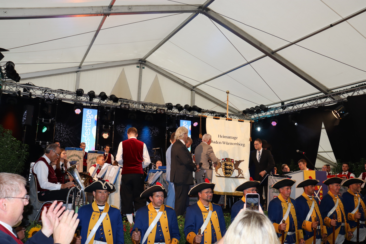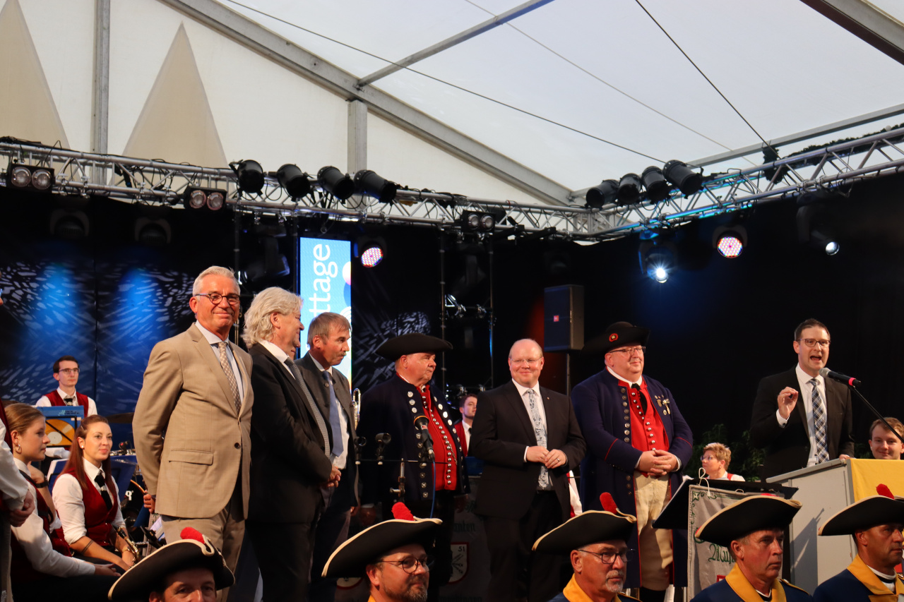 Zum Abschluss zogen wir zusammen mit den anderen Vereinen ins Festzelt ein, um unseren Oberbürgermeister Manuel Just bei der feierlichen Übernahme der Heimattage-Fahne zu unterstützen. Es war eine rundum gelungene Veranstaltung, die uns allen viel Freude bereitet hat.