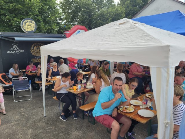 Gegrilltes, Salate und kühle Getränke beim Sommerfest 2024 im alten Feuerwehrgerätehaus auf der Weid